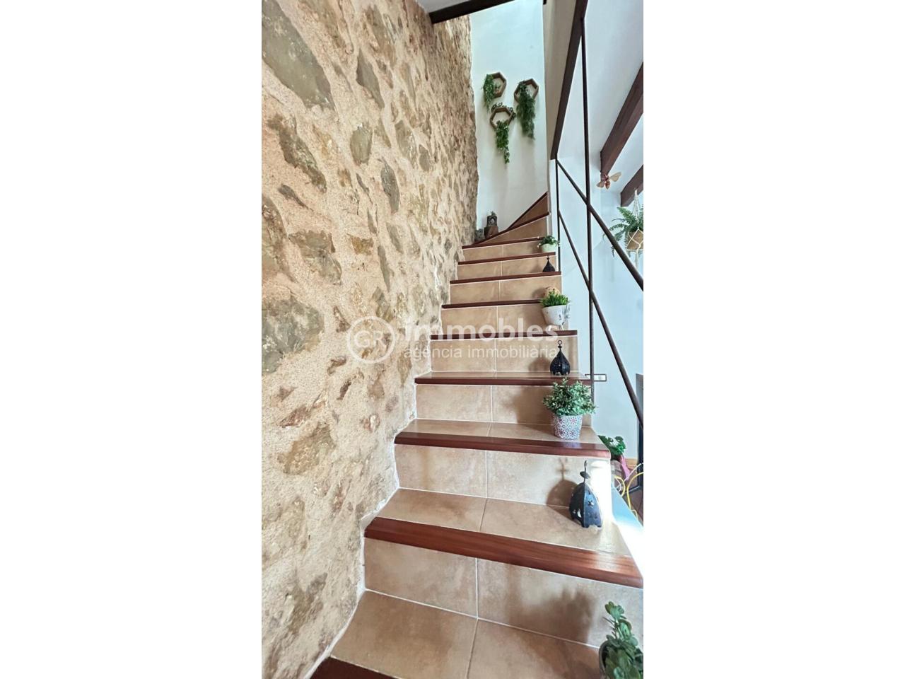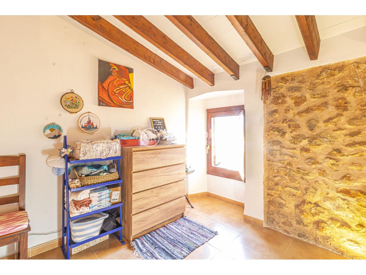 La vivienda resalta por sus paredes de piedra, muros exteriores anchos y techos altos con vigas vistas, que aportan amplitud, personalidad, luminosidad y una atmósfera única en cada estancia.